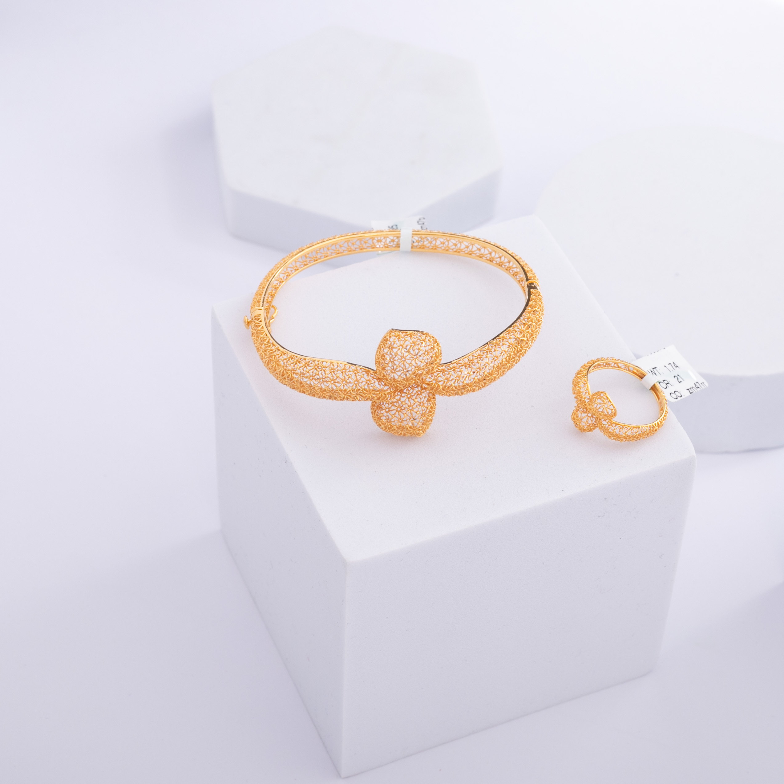 سوارة + خاتم منثورة الوردة الفخم عيار 21